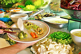 Oferecemos um completo rodízio com 45 cortes, que vão desde os tradicionais até exclusividades como a "Costela-Fogo-de-Chão" - assada por 8 horas na entrada do restaurante. São várias opções de gado 100% Angus e carnes exóticas. Contamos com 100 opções de acompanhamentos, como queijos, frios e uma completa pista de comida oriental com 25 opções. Tudo para que o seu almoço ou jantar seja uma experiência única!
