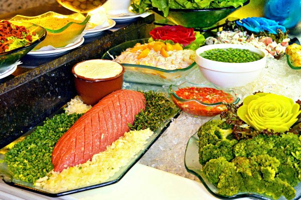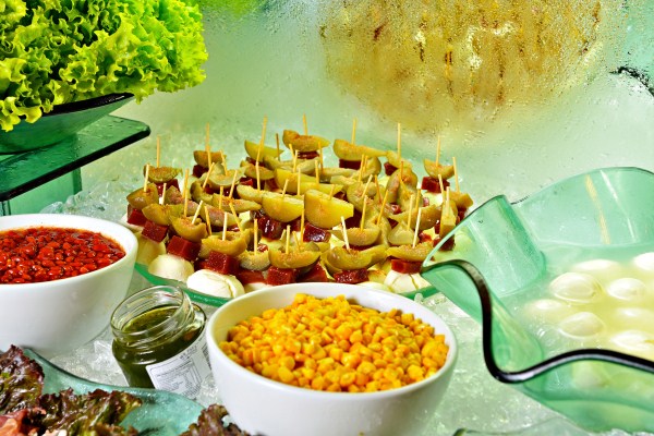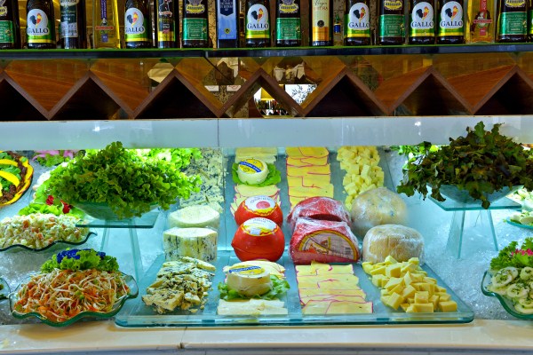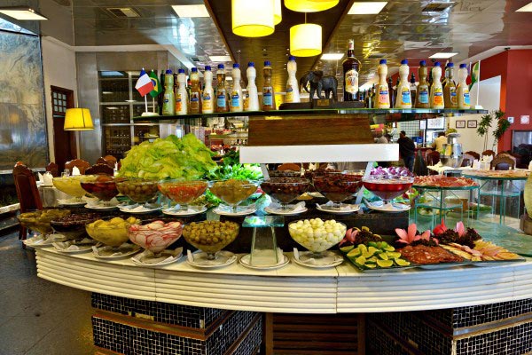 Oferecemos um completo rodízio com 45 cortes, que vão desde os tradicionais até exclusividades como a "Costela-Fogo-de-Chão" - assada por 8 horas na entrada do restaurante. São várias opções de gado 100% Angus e carnes exóticas. Contamos com 100 opções de acompanhamentos, como queijos, frios e uma completa pista de comida oriental com 25 opções. Tudo para que o seu almoço ou jantar seja uma experiência única!